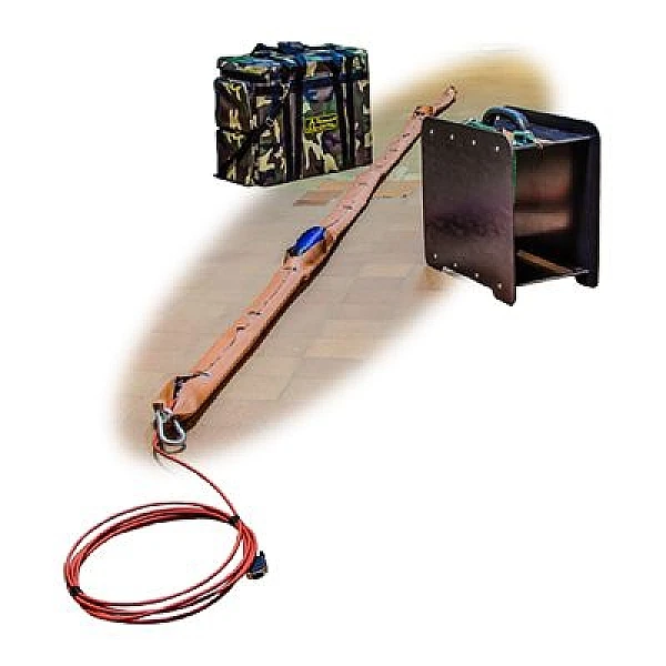Антенный блок имеет неразборную конструкцию, выполнен в виде полугибкого шланга, внутри которого размещаются передающий и приемный блоки со сменными вибраторами и блоки питания. АБДЛ имеет складное, герметичное исполнение, и может работать под водой и на пересеченной местности.
