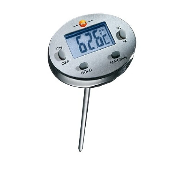 Компактный влагозащищённый минитермометр Testo 0560 1113 оснащен универсальным погружным/поверхностным зондом, что позволяет использовать прибор для измерения температуры различных жидкостей – воды, масла, топлива, а также пищевых продуктов, сыпучих строительных материалов. Устройство регистрирует температуру в пределах от -50°C до +230°C с высокой точностью: погрешность составляет 1°С.