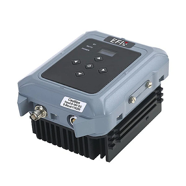 Радиомодем EFIX FL3 предназначен для передачи поправки между базовым и подвижным GNSS приемником в режиме RTK. Данный модем работает в диапазоне 410-470 МГц и может передавать данные с регулируемой мощностью от 5 до 28 Вт, в совокупности с пыле-влагозащитой по стандарту IP67 позволяет работать в сложных полевых условиях. Удобный интерфейс на передней панели, позволит совершить широкие настройки, не прибегая к помощи ПК, так же можно совершать настройки с помощью служебной программы для ПК. Питание на модем подается через внешний аккумулятор, при этом заряд аккумулятора будет отображаться на экране радиомодема.