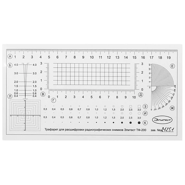 Купить Трафарет ЭЛИТЕСТ ТФ-200 для расшифровки радиографических снимков в Ярославле легко — просто позвоните по телефону: 8-800-551-11-01