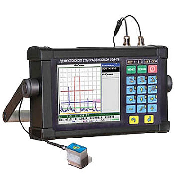 Ультразвуковой дефектоскоп-томограф общего назначения УД4-76, с большим высококонтрастным TFT дисплеем, применяется для контроля продукции на наличие (обнаружение) дефектов типа нарушения сплошности и однородности материалов, изделий и полуфабрикатов, сварных соединений, измерения отношения амплитуд сигналов от дефектов, глубины и координат их залегания. Функция томографа позволяет отображать и сохранять результаты контроля в виде Б-сканов с привязкой к пути сканирования. Дефектоскоп также решает задачу измерения толщины изделий при одностороннем доступе. Включено несколько режимов работы с АРД диаграммами, что позволяет мобильно определять эквивалентные размеры дефектов.